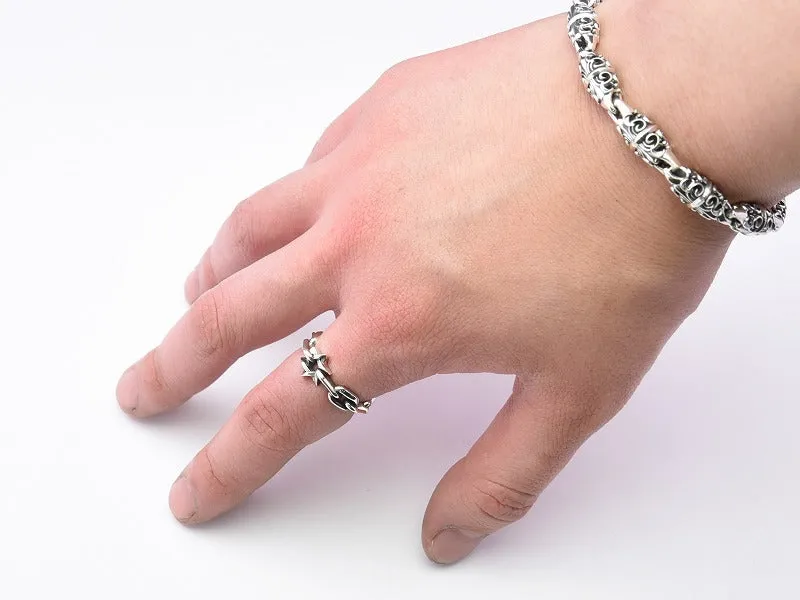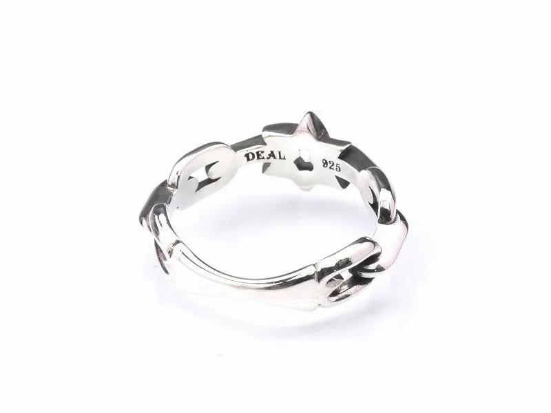 A pop ring with a three-dimensional six star in the center of a ring that imitates a chain.