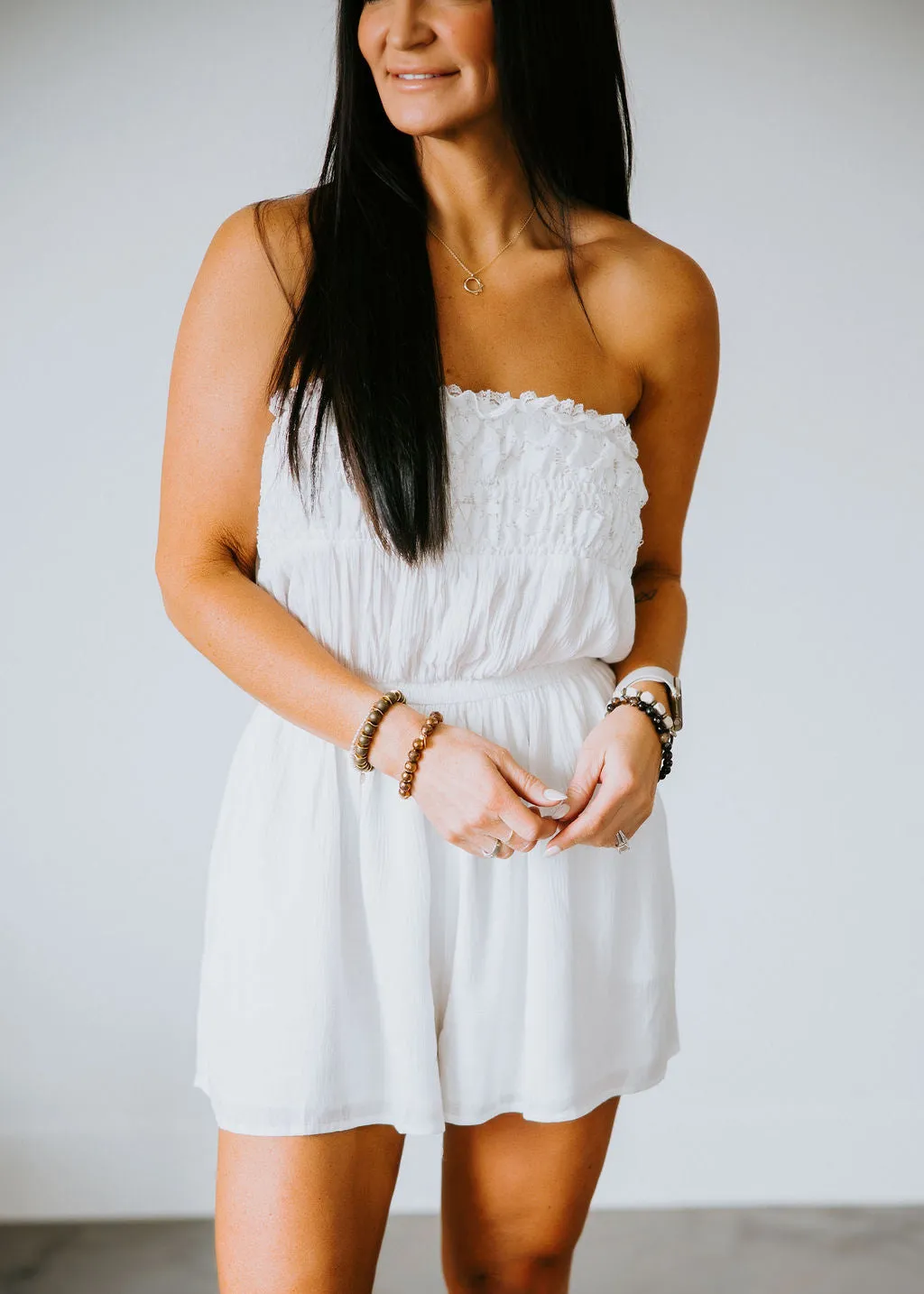 This Adore You Romper exquisitely combines comfort and style. With its soft, lace fabric, it proves to be the perfect addition to your wardrobe. Complete with an elastic waistband for maximum comfort. Effortlessly sophisticated and versatile, it is sure to become an essential. Laurie is wearing a size small.