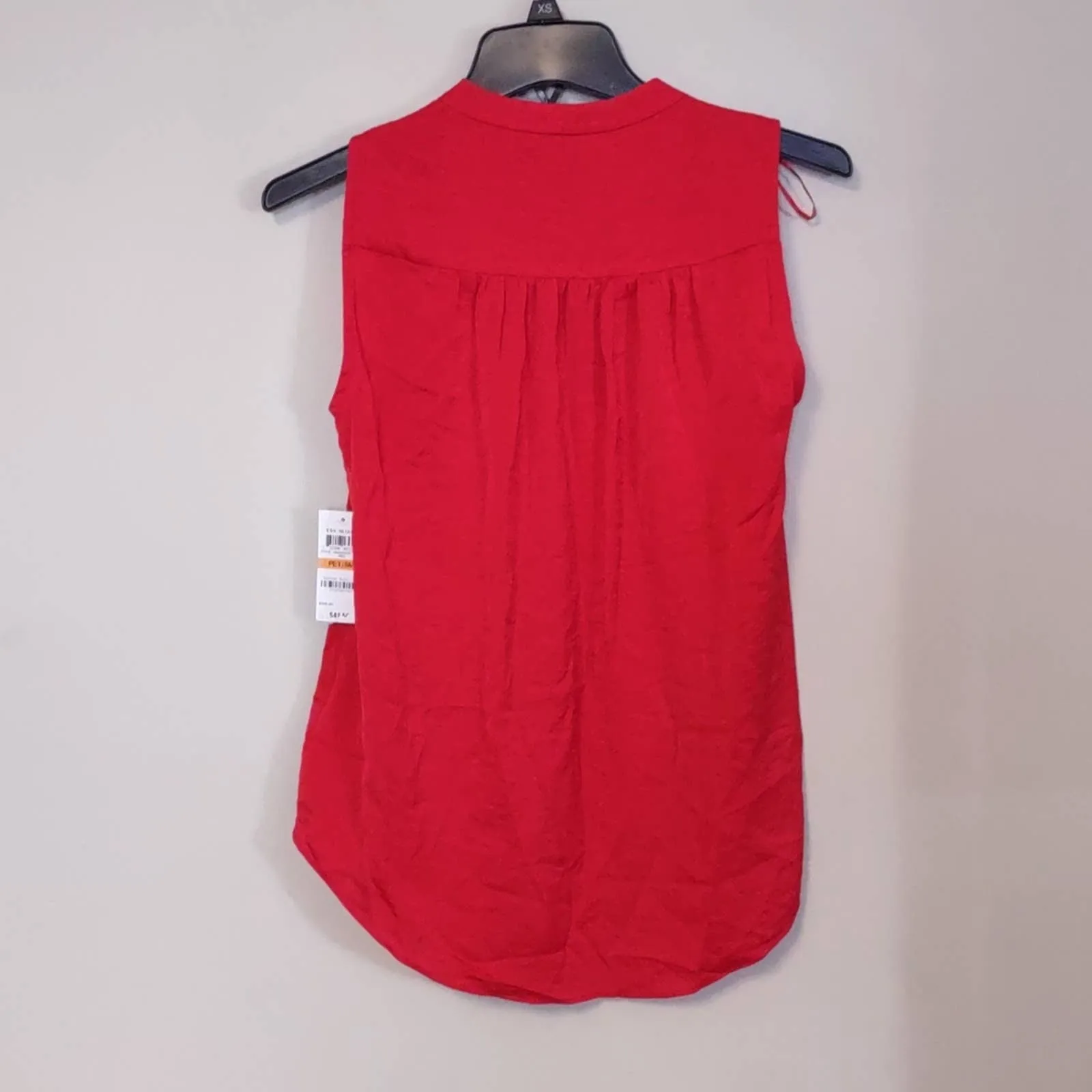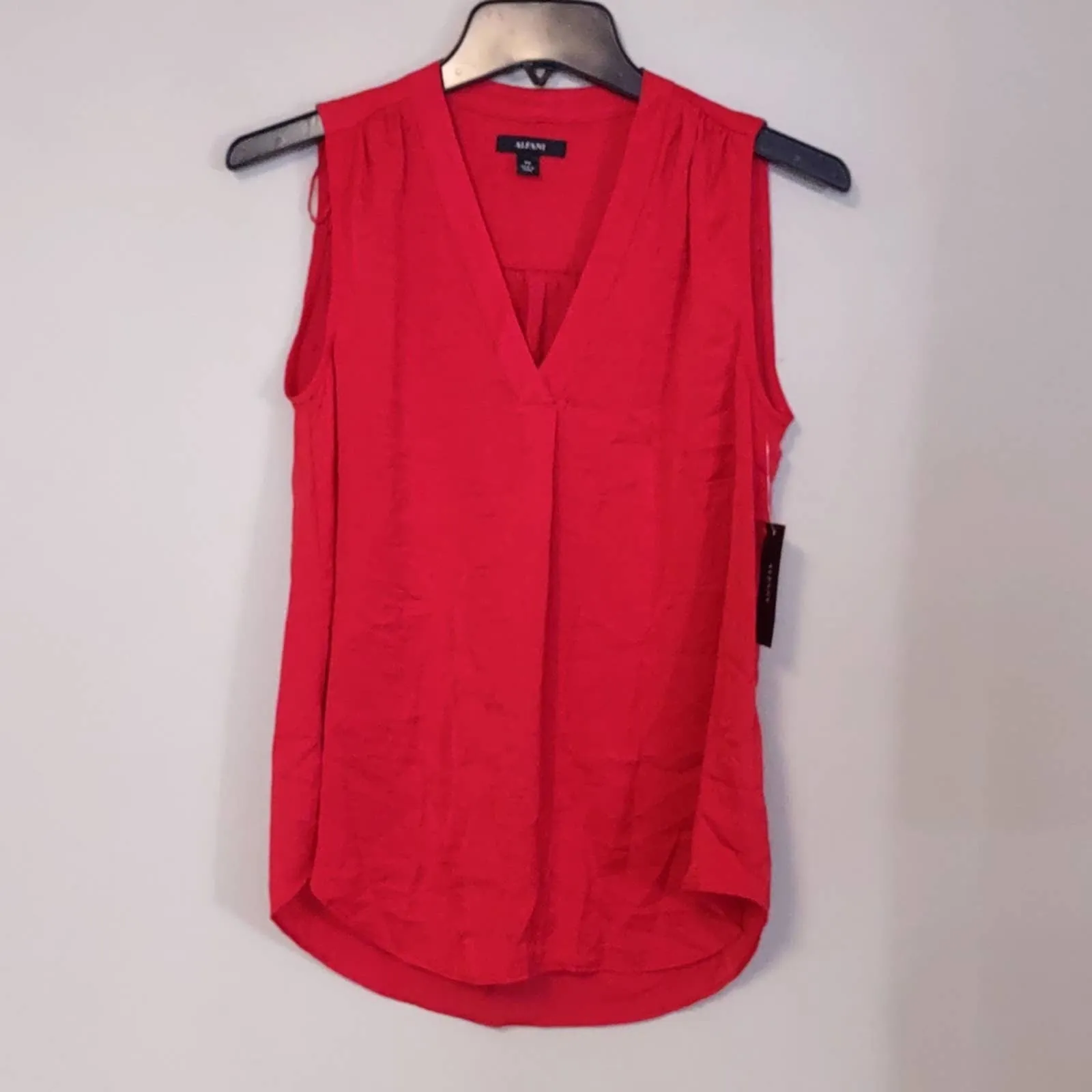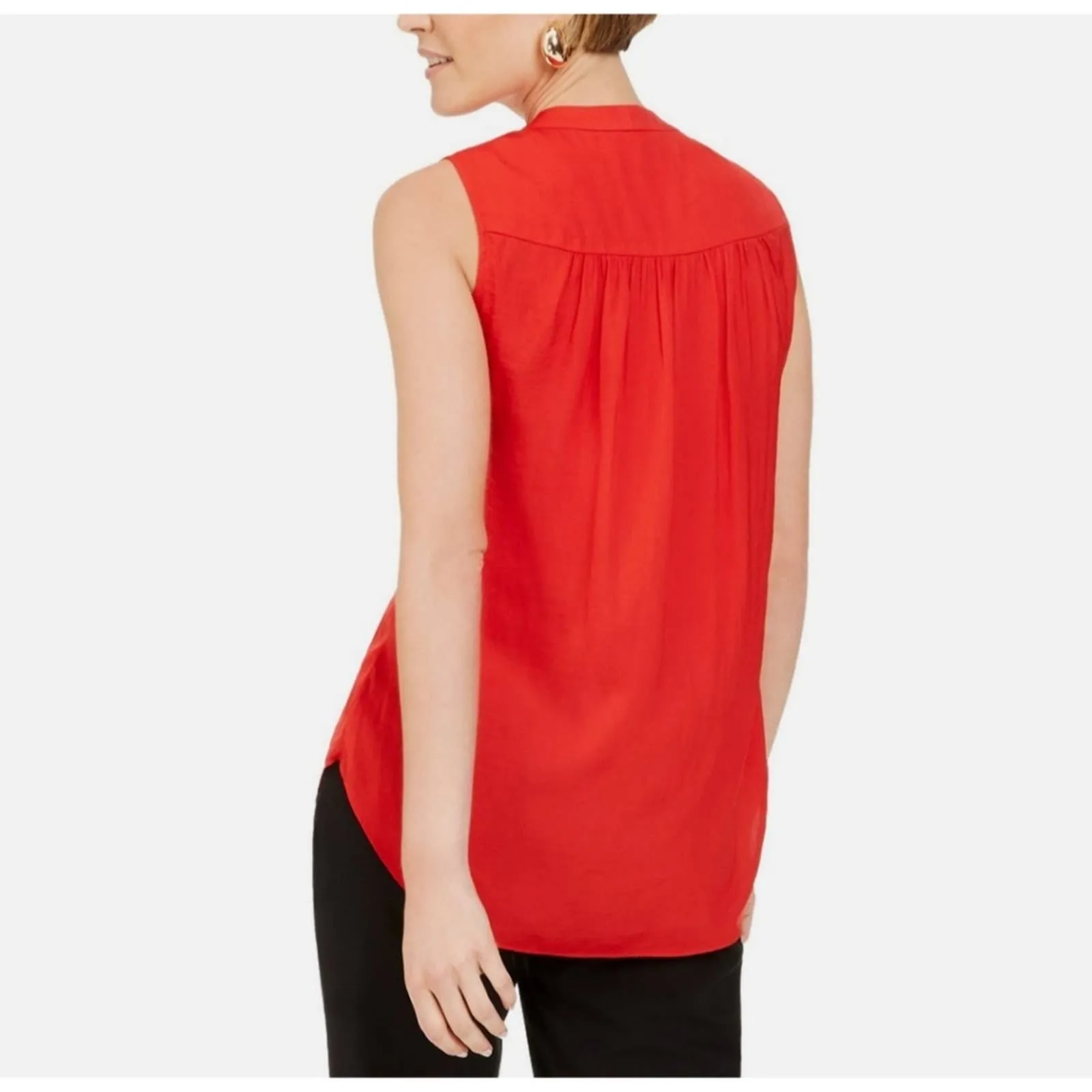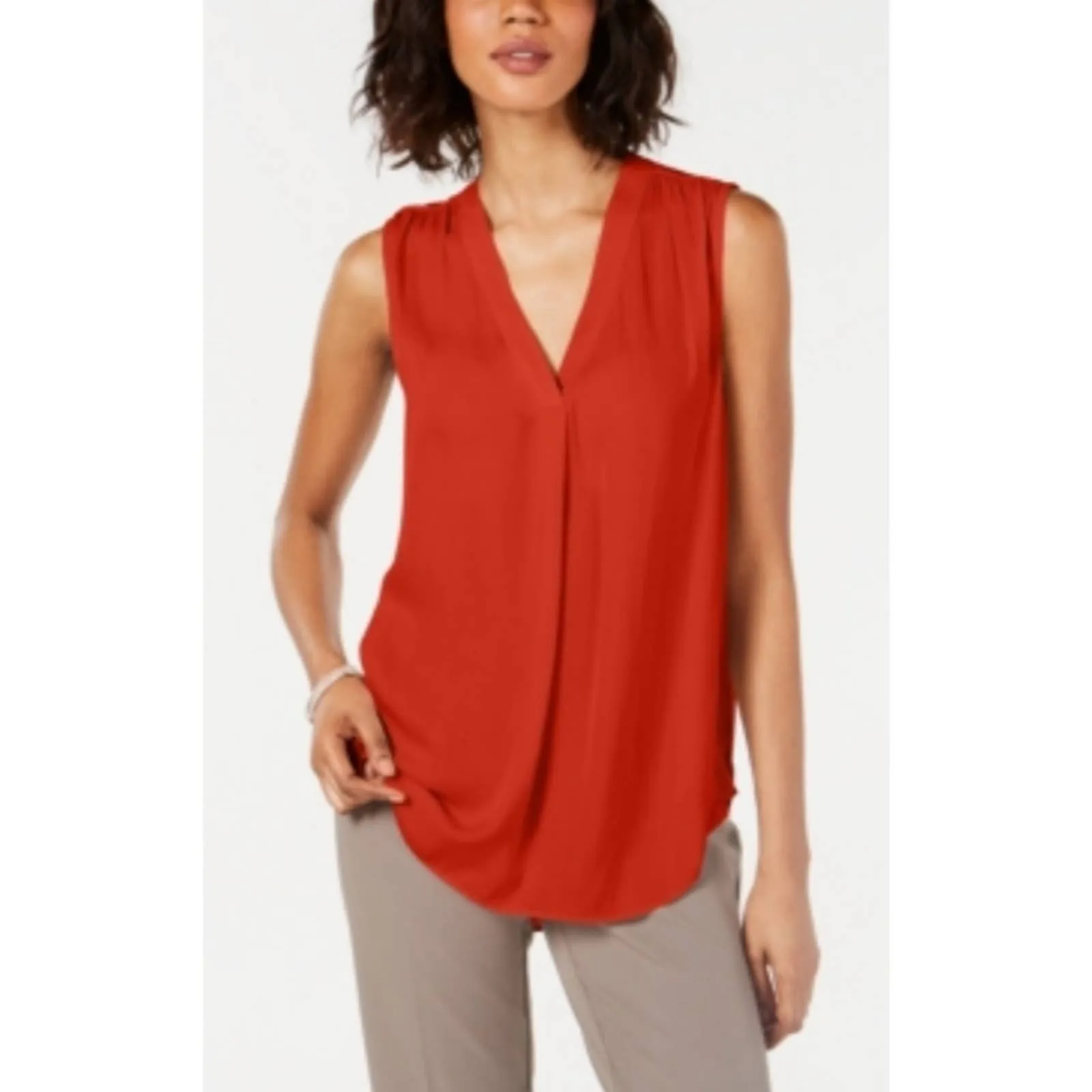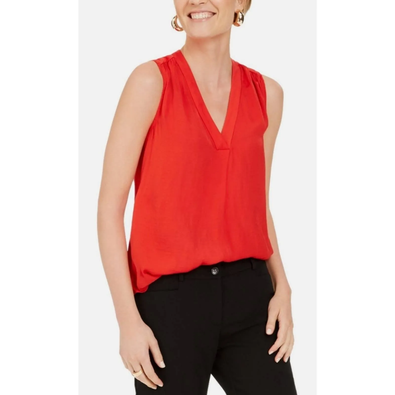 Alfani Petite Washed Satin V Neck Tank Top in Red
