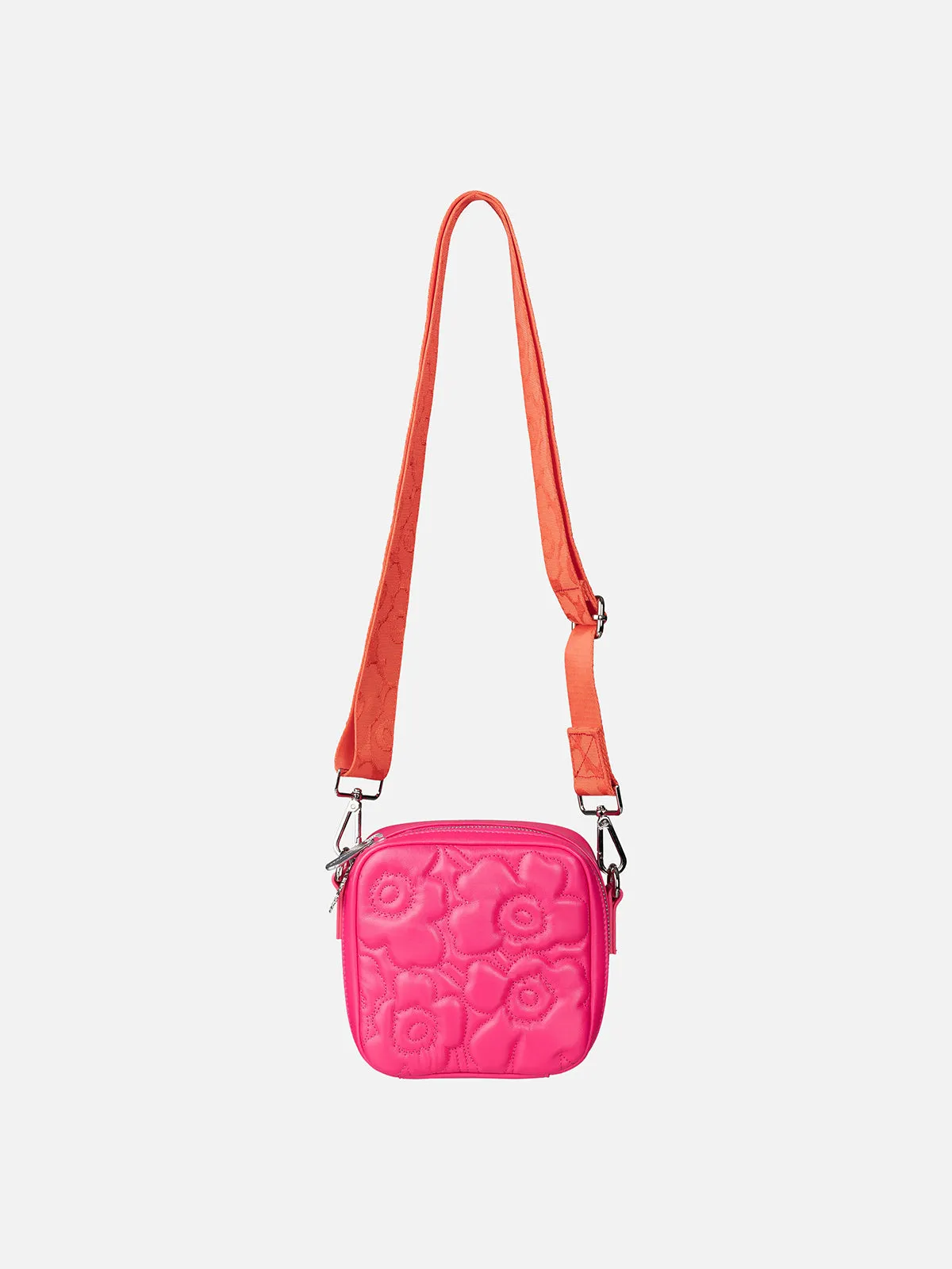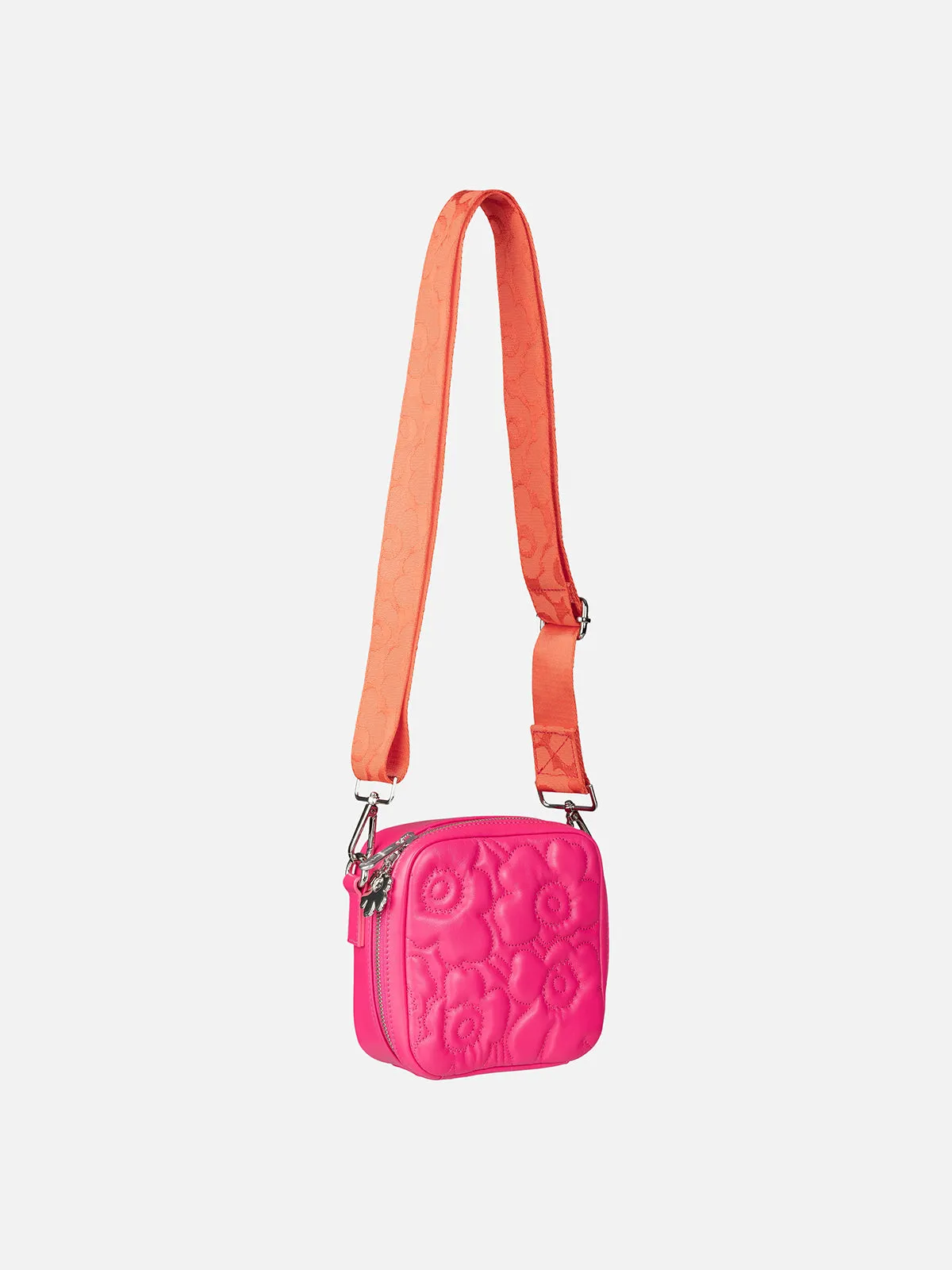 The Baby Gratha shoulder bag is made of padded leather, and it features the quilted Unikko pattern. The soft nappa leather develops a patina over time. The bag has an adjustable and detachable, jacquard knit Unikko pattern shoulder strap, which is made of recycled polyamide. The bag has a zipper closure with one Unikko puller and a small zipper pocket on the inside. The inside of the bag is lined.