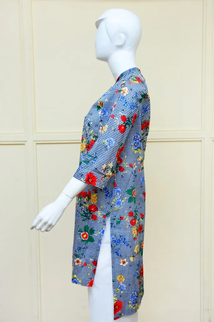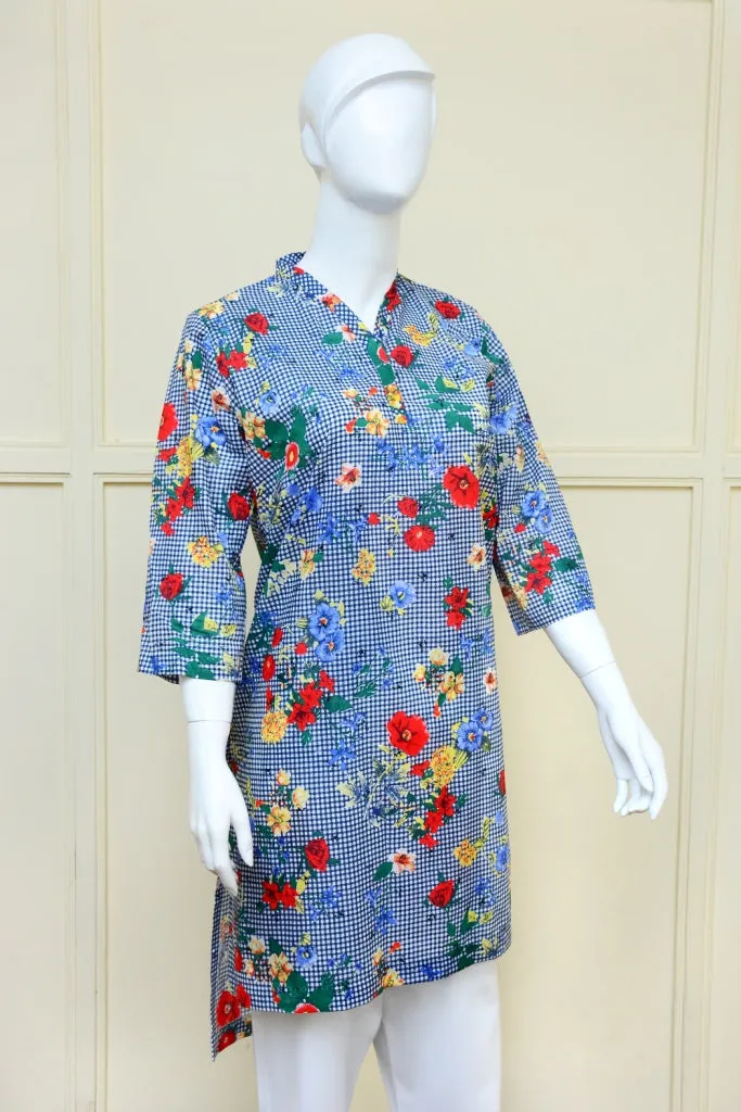 Blue Printed Check Kurti