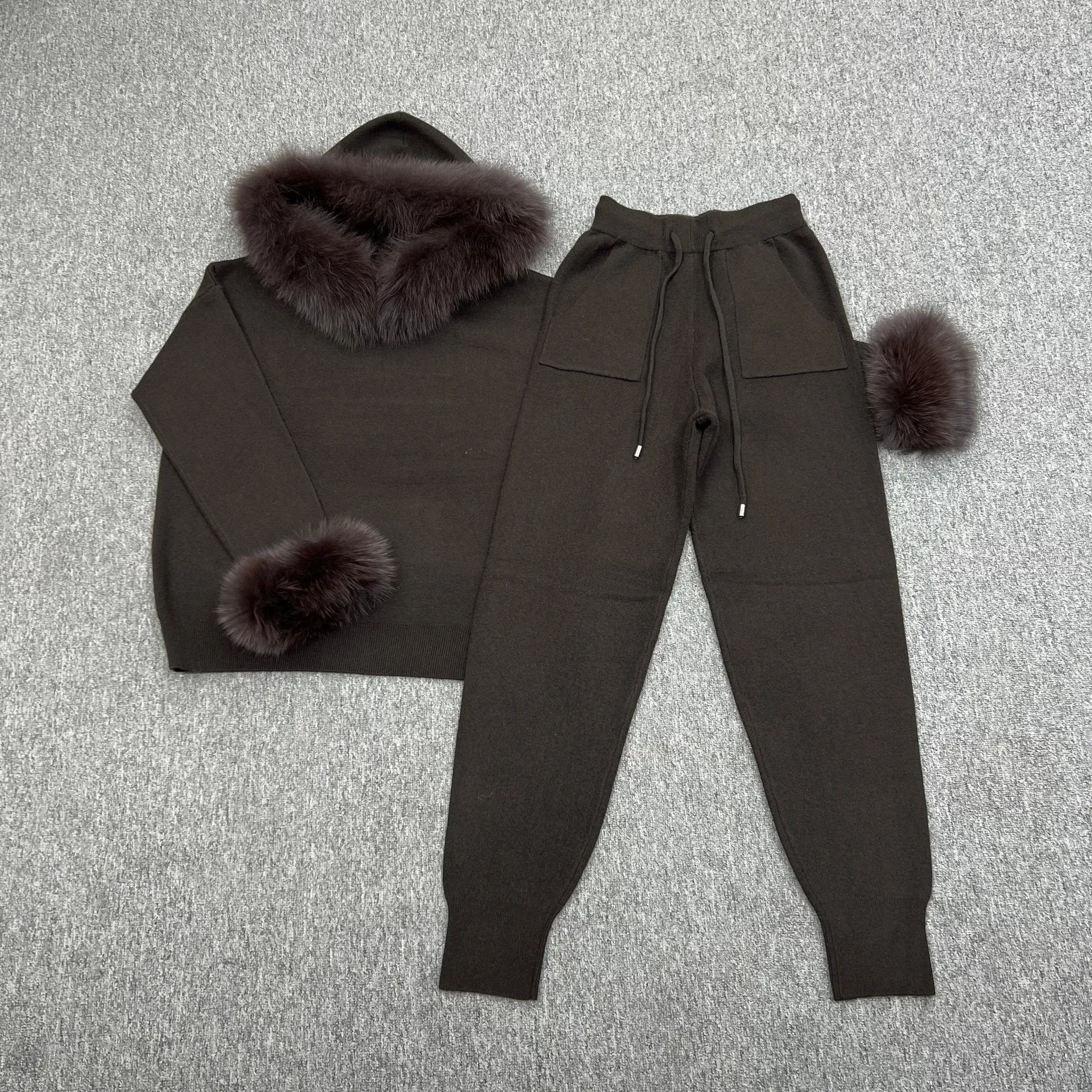 This Fox Fur Trim Hood & Cuff Tracksuit offers ultimate comfort and style. The cozy Fox fur trim on the hood and cuffs add a touch of luxury, while the cuffed legs and drawstring waist provide a perfect fit. Stay warm and fashionable with the soft Fox fur material.