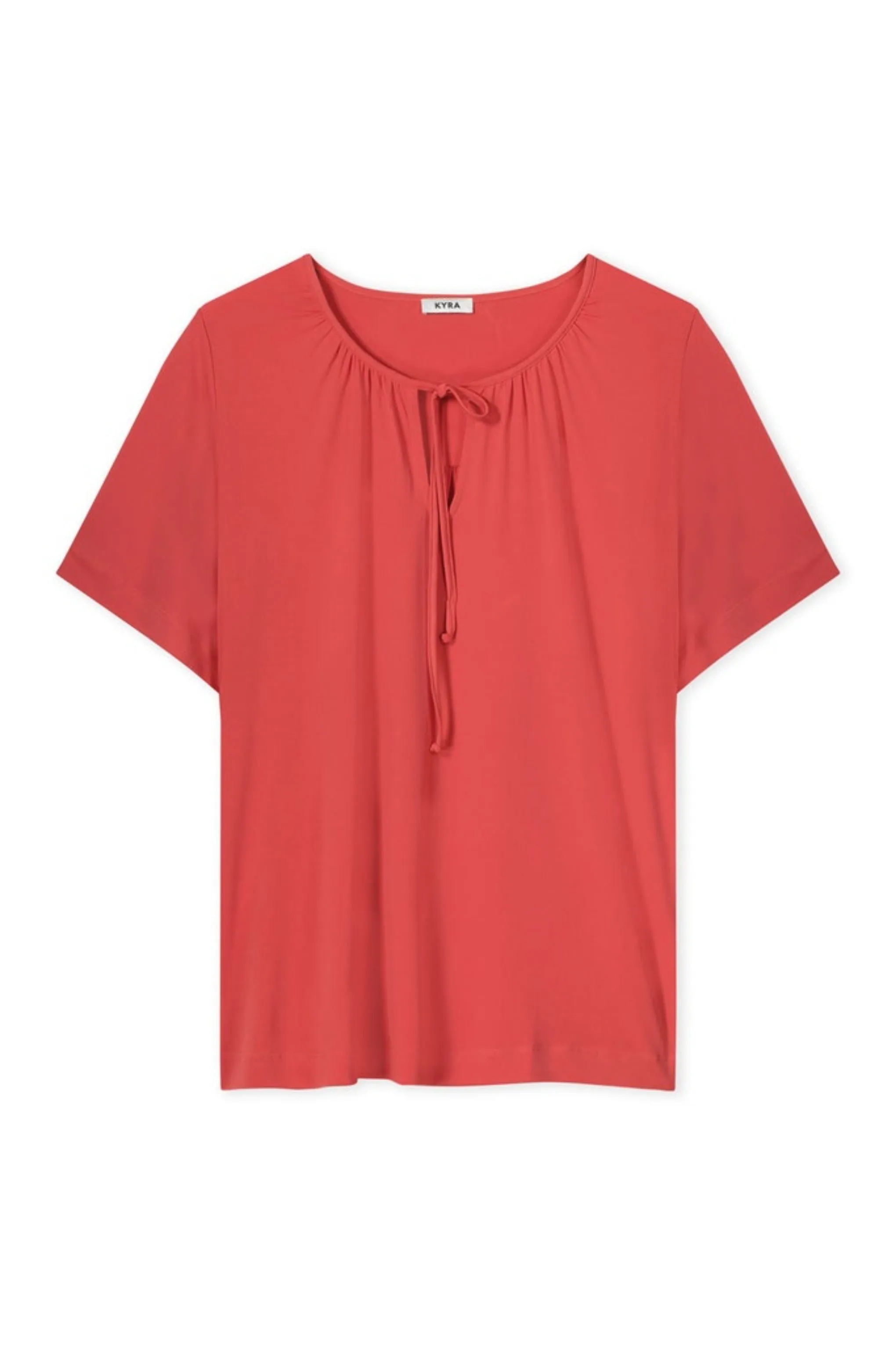 This rose red top, made of a high-quality blend of 95% Polyethylene and 5% Elastane jersey, features a v-neck with tie front closure and elegant silhouette. The soft, flexible fabric provides a comfortable fit. Embrace style and comfort with flared sleeve top.
