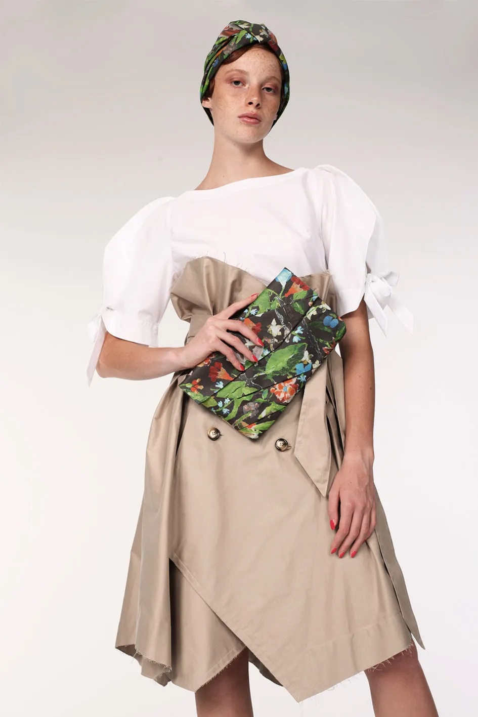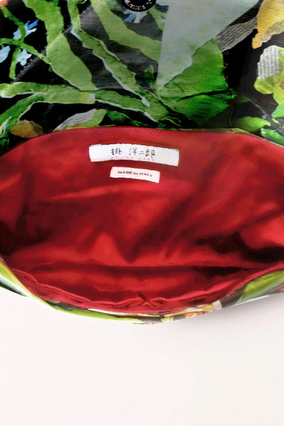 The print pattern is designed with a Japanese style collage painting using Italian newspaper and colored paper as a motif of birds, butterflies and flowers, which can be found in the mosaic Pietra Dura ” which is the artistic carving of three-dimensional objects in semi-precious stone.