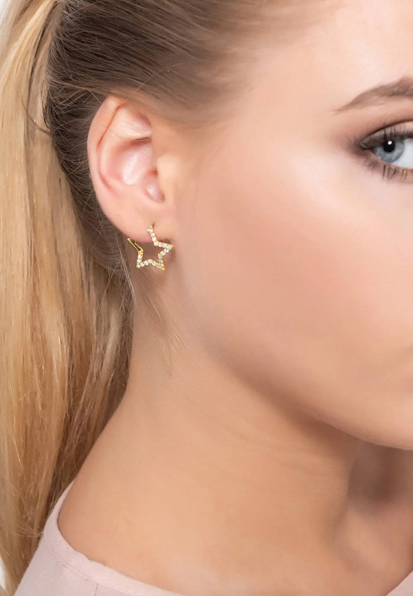 Shine brighter than the stars in our meticulously crafted and beautifully styled open star hoop earrings that sparkle with the brilliance of diamonds.