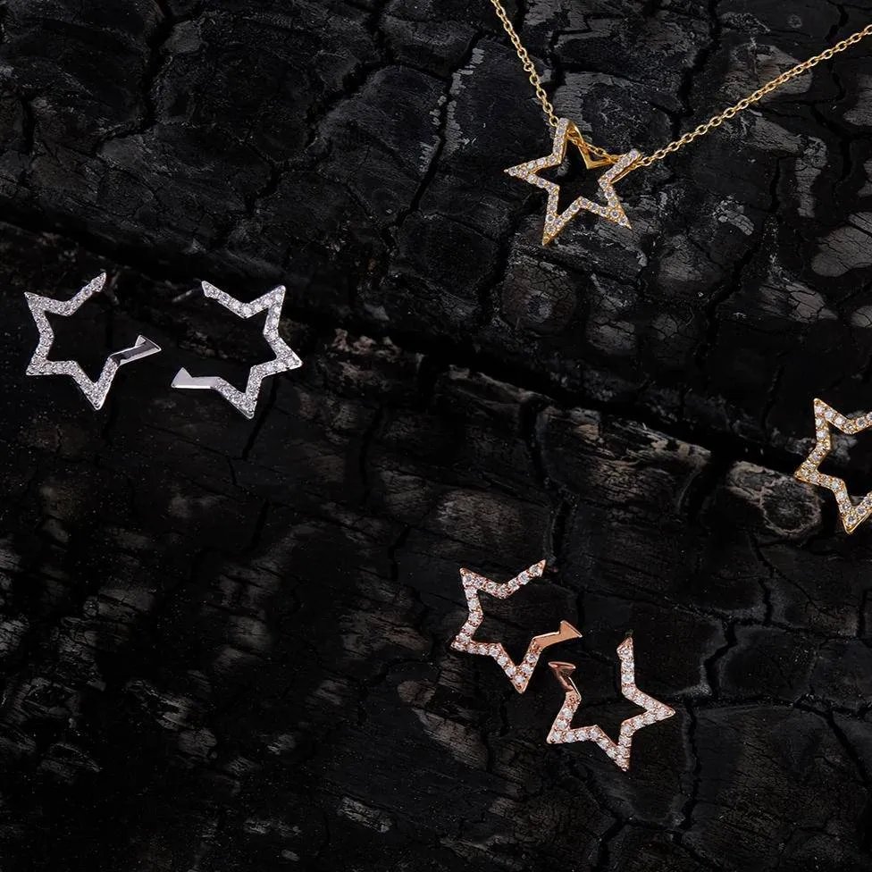 Pretty and petite, these earrings feature a star shaped hoop, adorned with diamonds, which hug the earlobe for an elegant, understated aesthetic making them perfect for those who covet delicate jewellery with added sparkle.