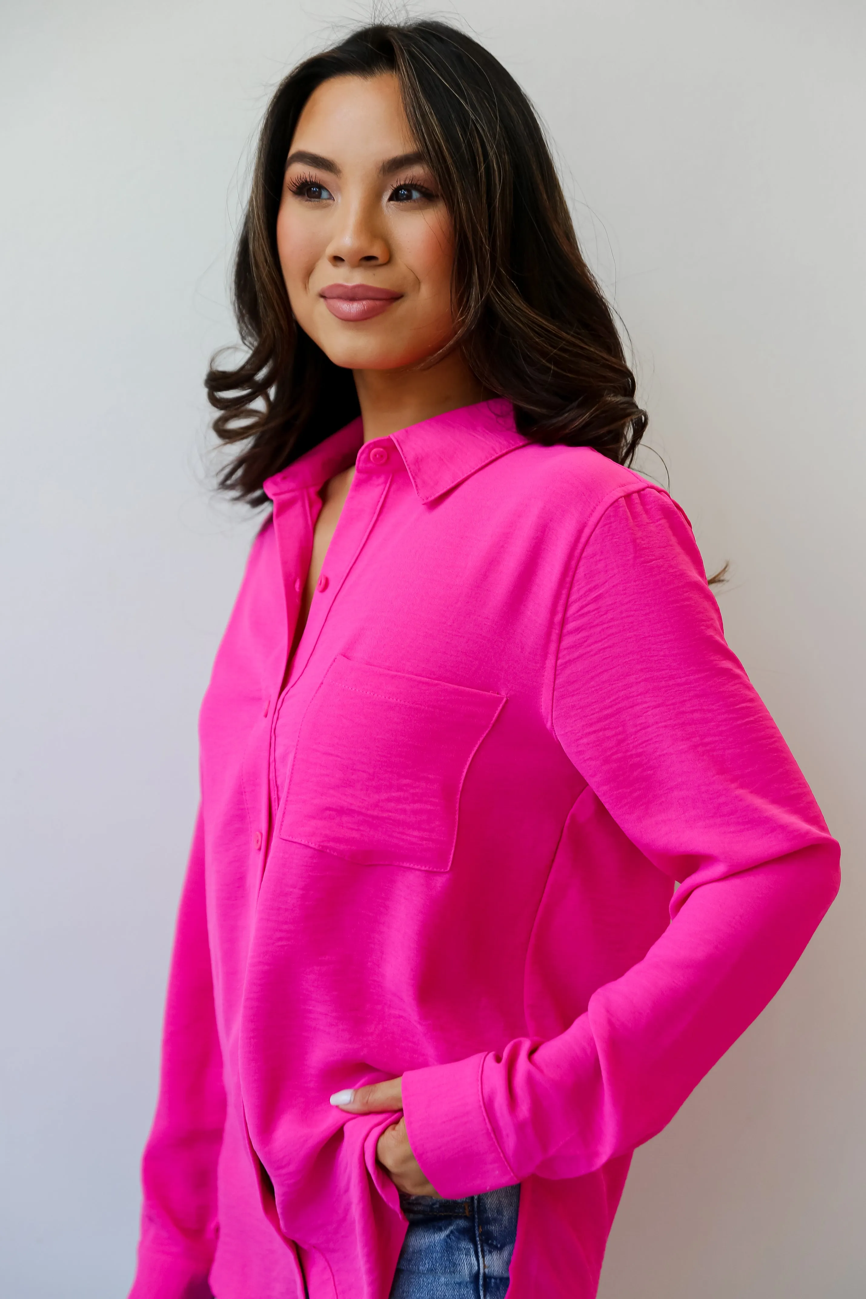 Introducing the timeless Ashley Button-Up Blouse, now available in a stunning array of colors! This versatile blouse effortlessly combines sophistication with a pop of vibrant color, providing you with a wardrobe essential that seamlessly transitions from work to weekend in style. The classic button-up design adds an element of polished refinement to your ensemble, making it a versatile piece for various occasions. Whether you opt for the serene and calming blue or the bold and lively hot pink, each hue brings its own character to this wardrobe staple. Pair the blue variation with tailored trousers for a professional office look, or choose the hot pink version to make a bold statement during weekend outings! Available in 2 colors.