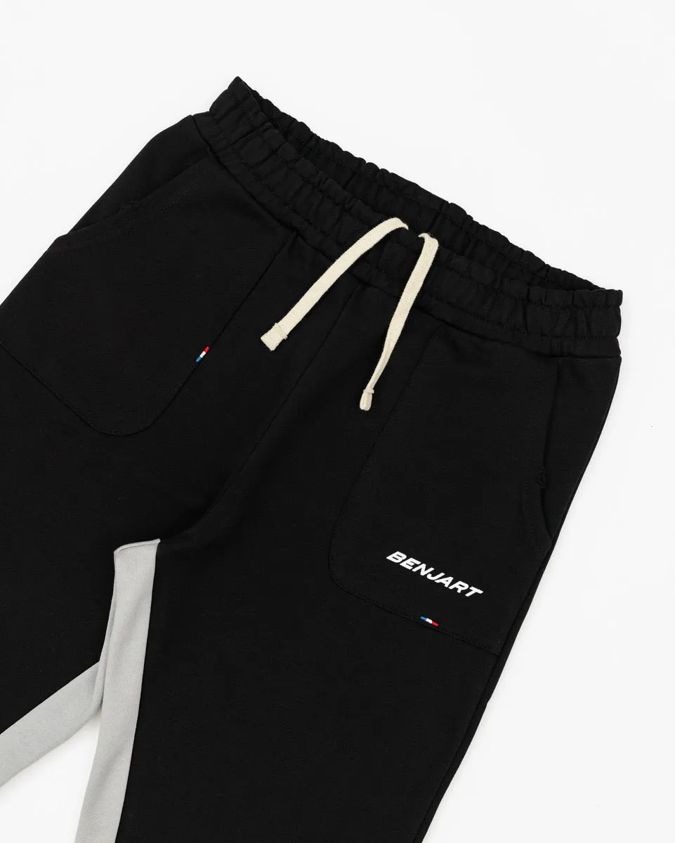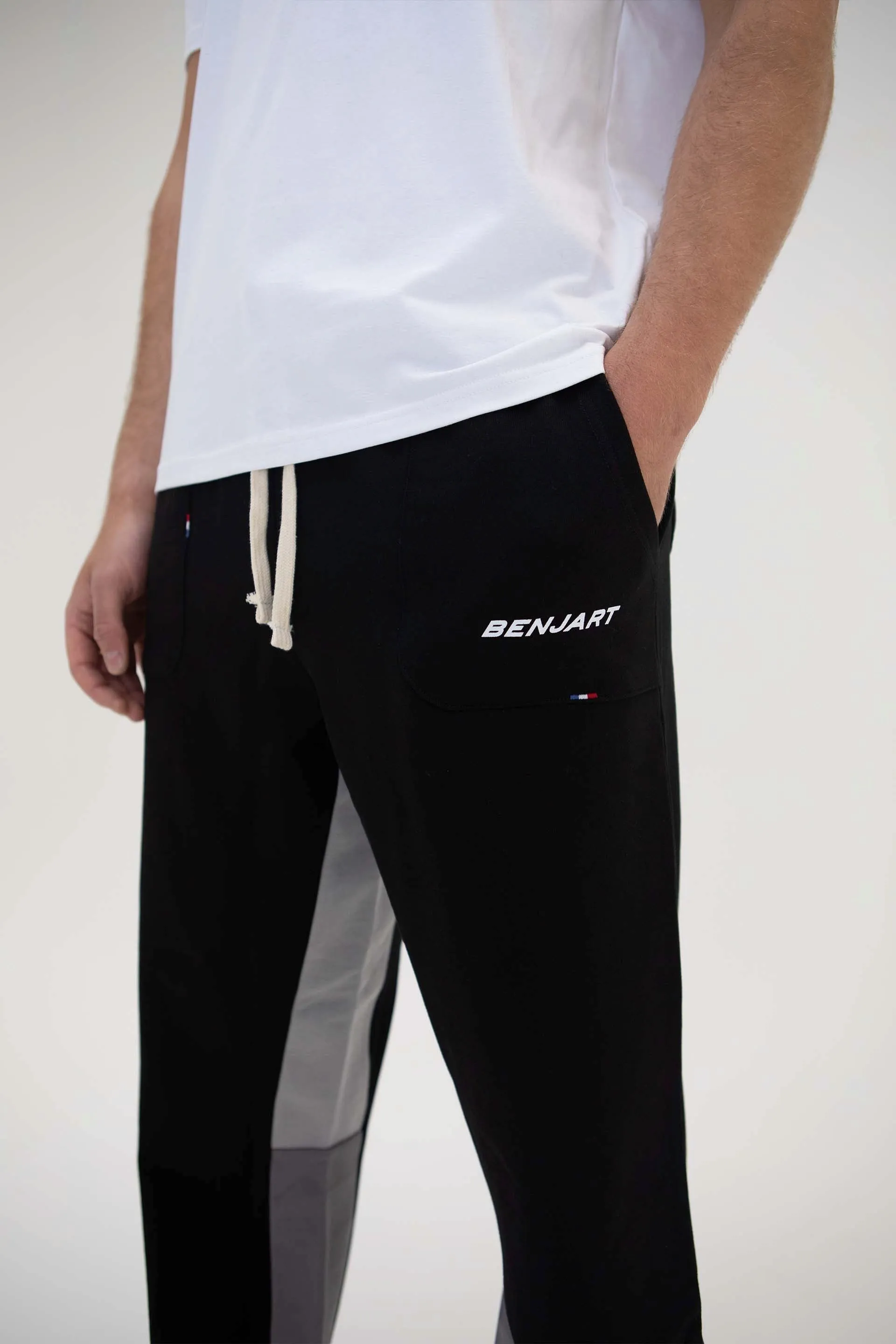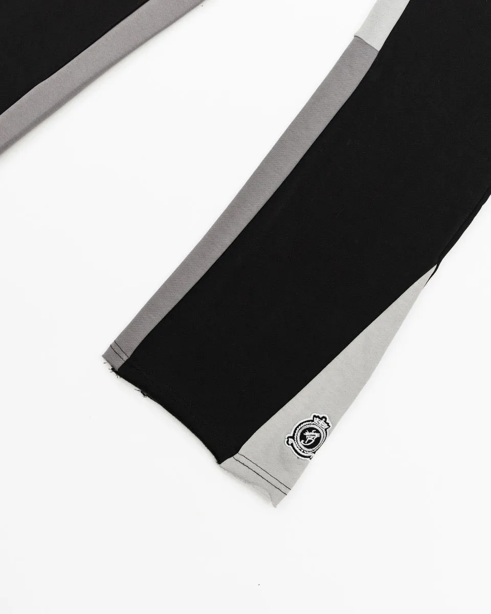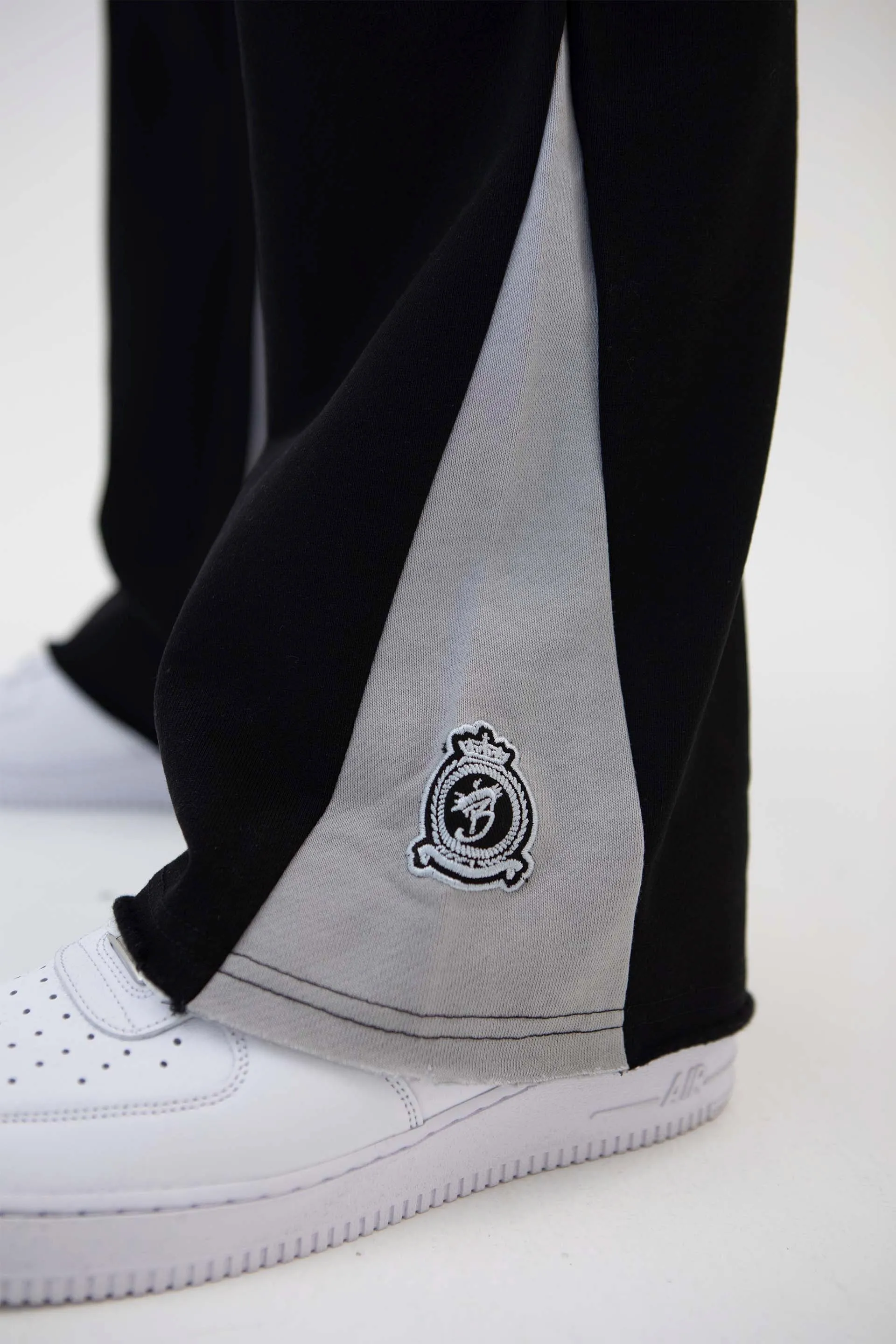 Our new Flare joggers are made from a durable cotton jersey with distressed details to the hem. Panel inserts in contrasting colours, front patch pockets, back pockets, internal drawcord and HRH embroidery to lower leg.