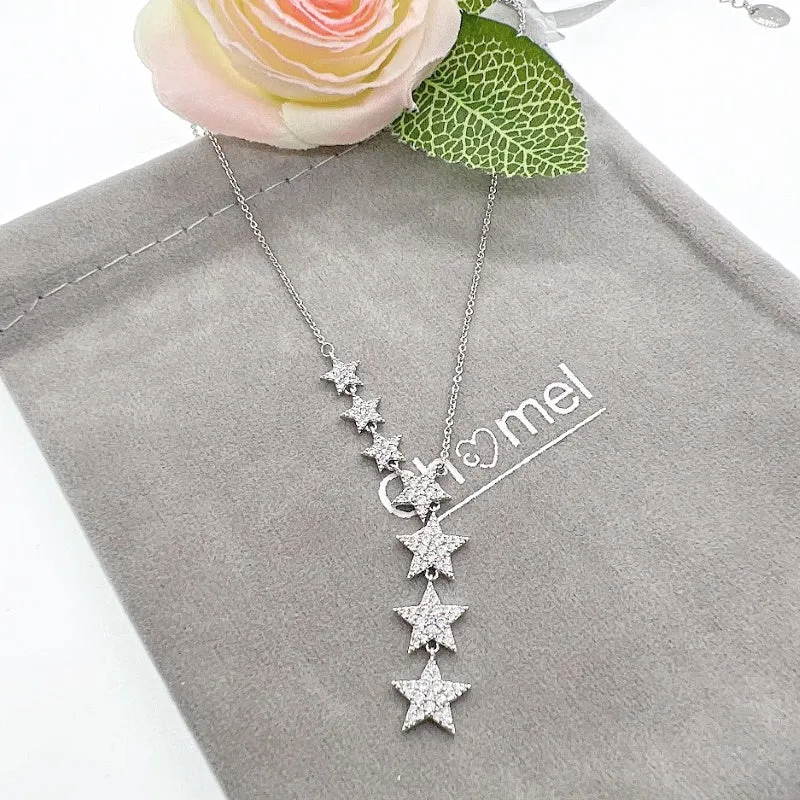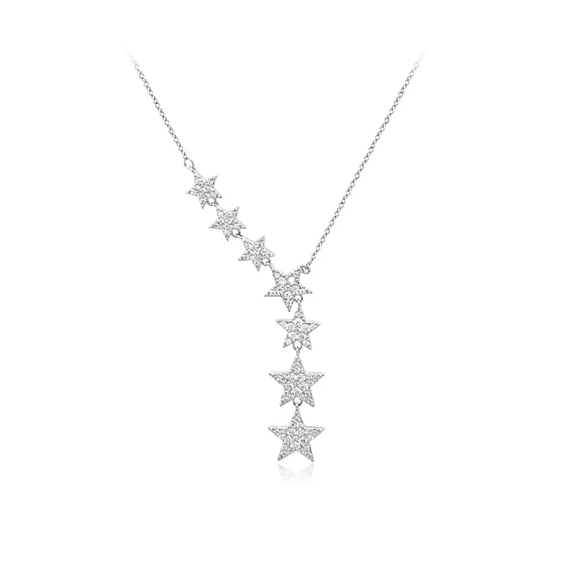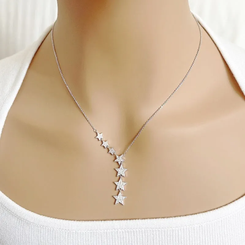 Featuring 7 sparkling stars cubic zirconia in a stylish V-shaped drop design, this necklace is perfect for adding a touch of elegance to any outfit.