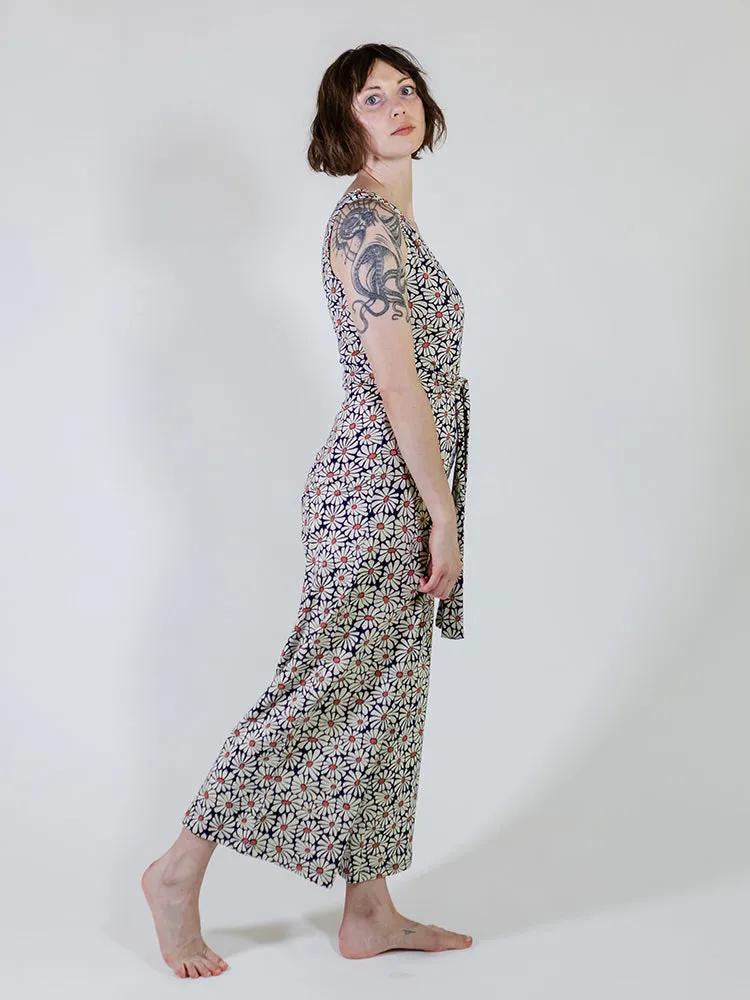 Cut from a super soft organic cotton jersey, this punchy floral jumpsuit features a faux wrap v-neck front, adjustable side tie, and wide leg cropped bottoms. Rita will be your new go-to loungewear look, but add cute shoes and earrings and you're evening ready!