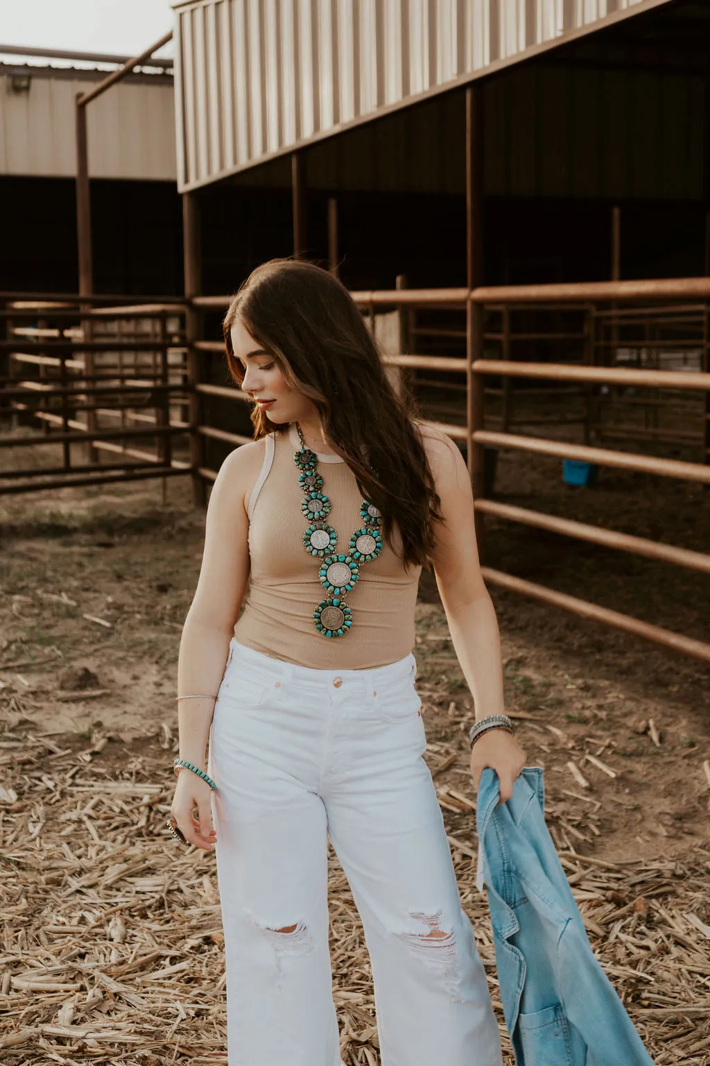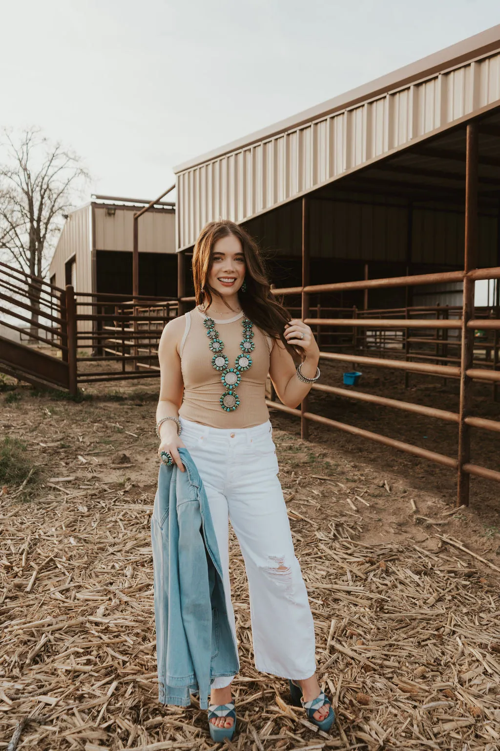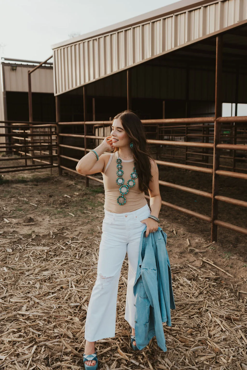 Bodysuits are perfect for layering & we are loving this neutral colored one. Features a contrast neck & sleeves.